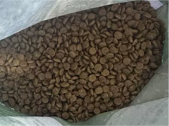 乖巧新疆鲜肉猫粮的颗粒比较小,颜色偏深,表面不会很油腻,闻起来比较香,但也有一点肉腥味。